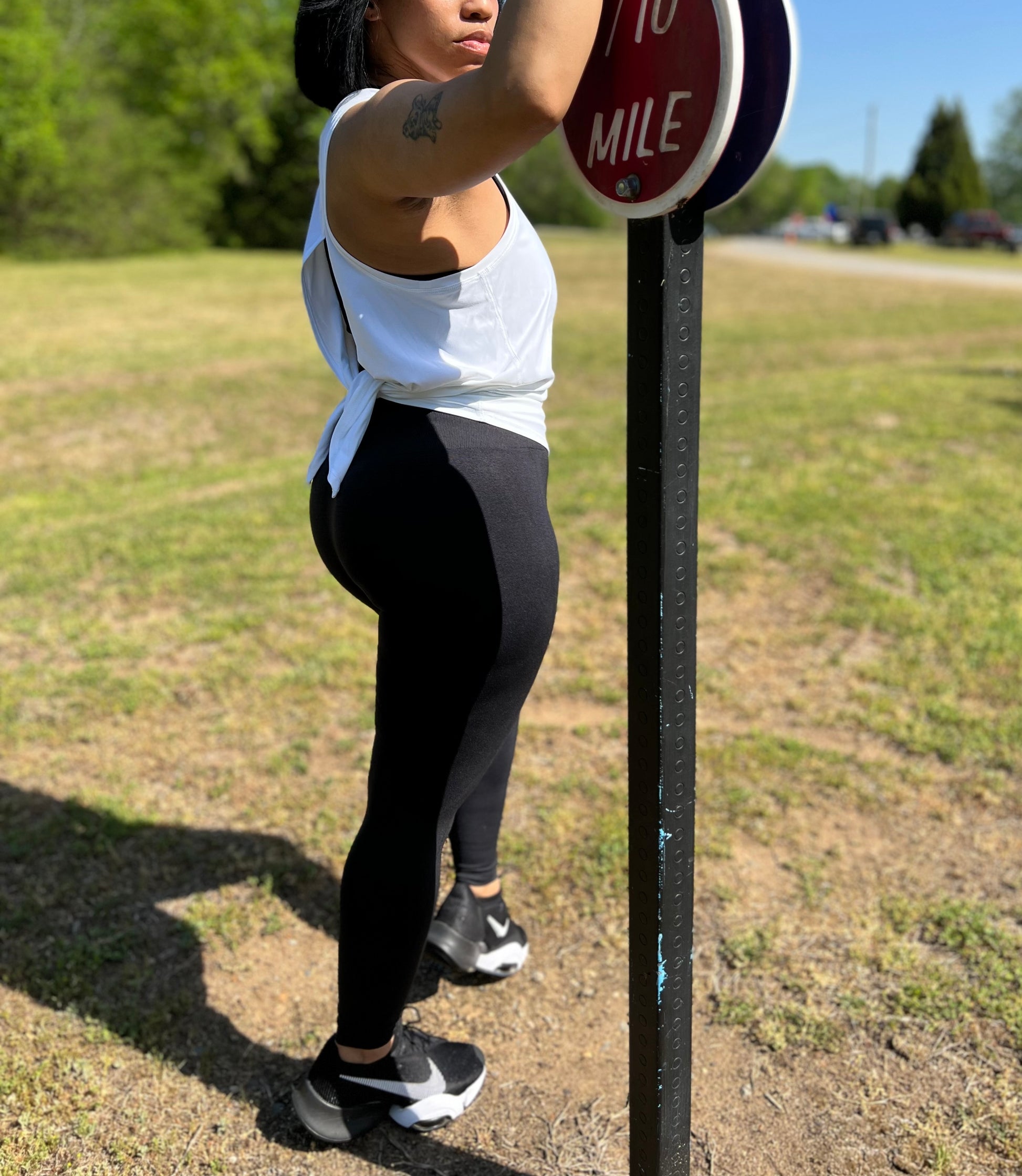 This style is the daughter to our “Back It Up” top. However, this design will provide versatility and better control over the fit of your top. Whether you decide to wear it unloose or tied, this style has more than enough room to create and boost your motivation to “get in motion”.